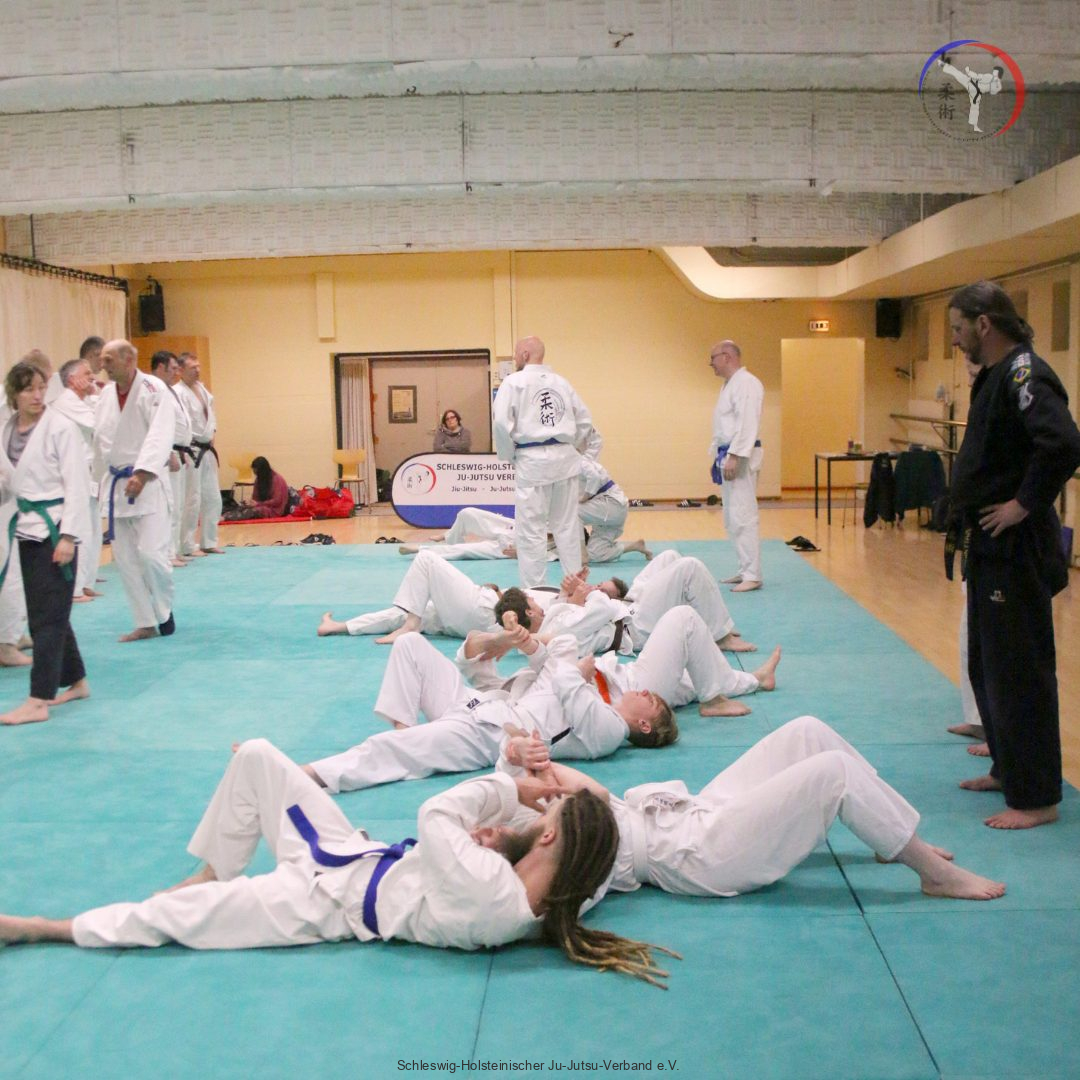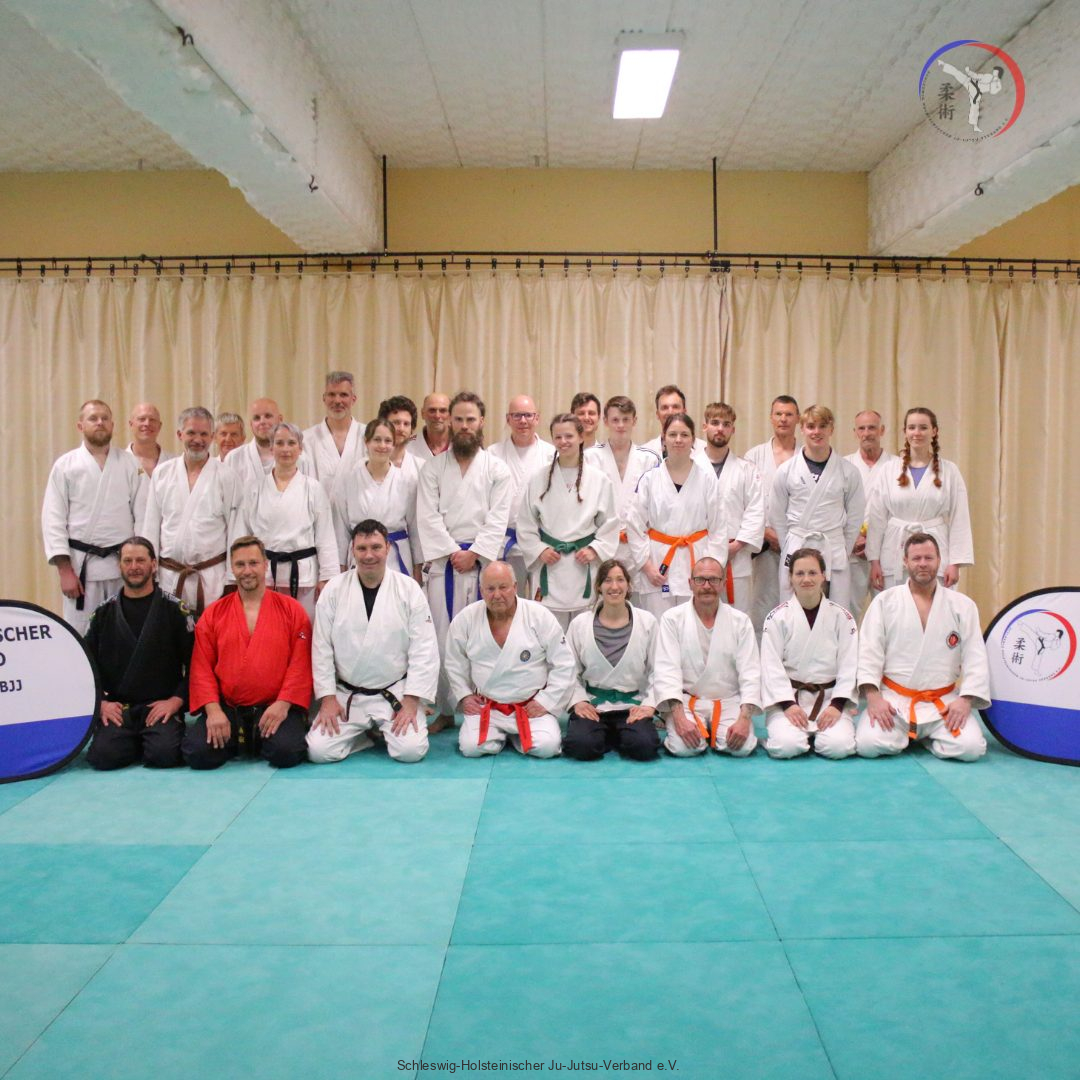 Am 06. Mai hatte der Jiu-Jitsu Referent des SHJJV Peter Schneider, 10. Dan, in die Idreatshalle Flensburg zum Prüfungsvorbereitungslehrgang eingeladen. Die über 30 Teilnehmenden aus verschiedensten Vereinen schwitzten fünf Stunden bei intensivem Training.